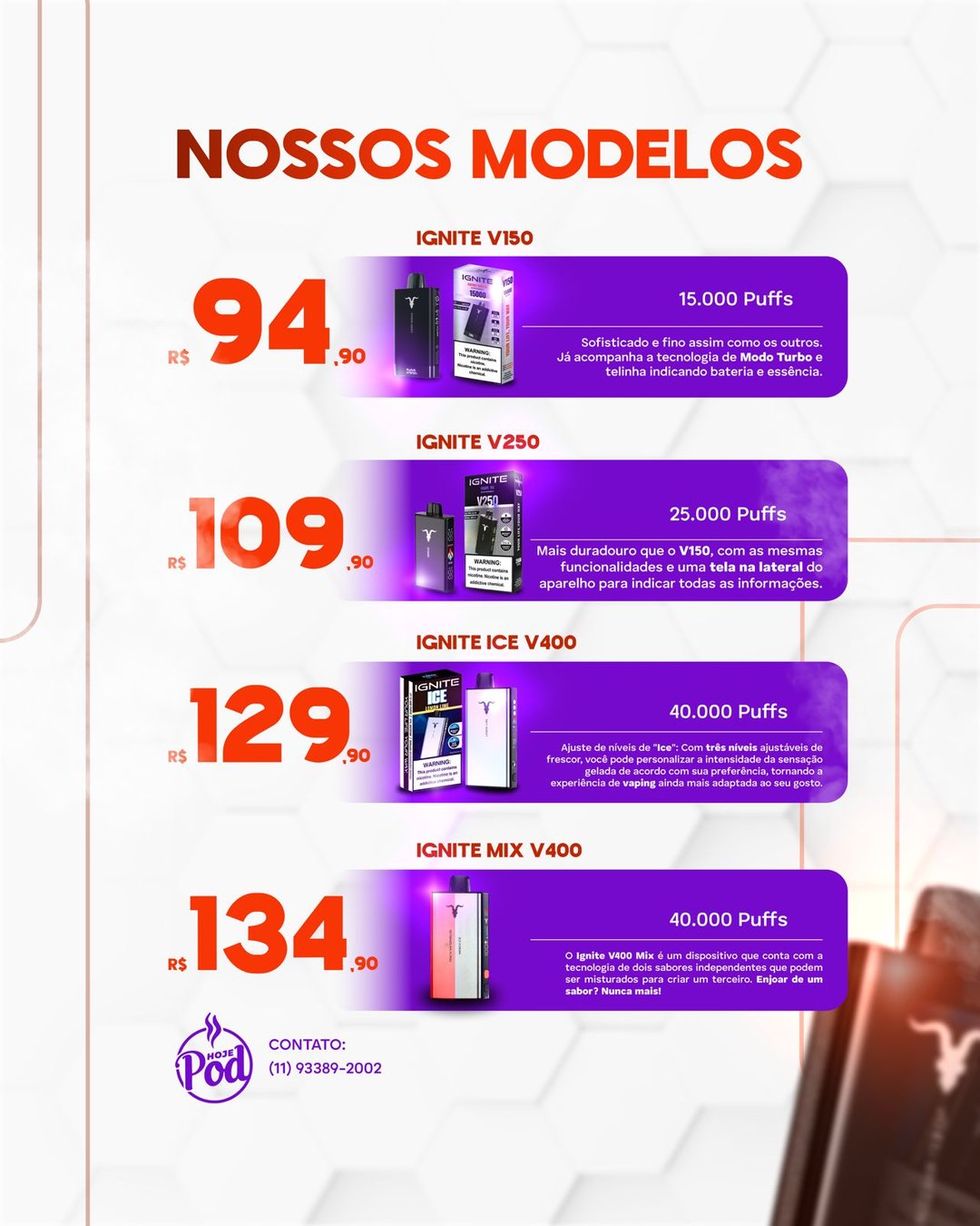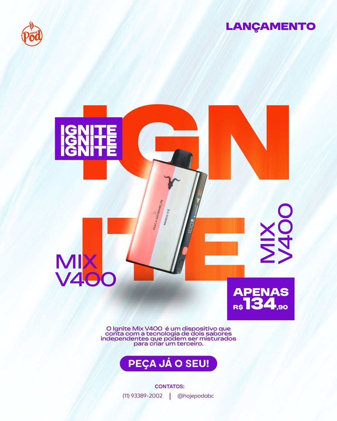 🔥 Lançamento Exclusivo na Hoje Pod: Ignite V400 MIX – 40.000 Puffs! 🔥